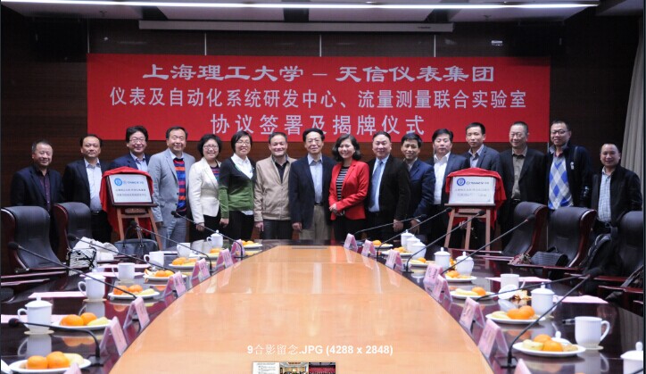 2014年11月25日下午,由上海理工大學(xué)與天信儀表集團(tuán)有限公司合作建立的“上海理工大學(xué)—天信儀表集團(tuán)儀表自動(dòng)化系統(tǒng)研發(fā)中心、流量測(cè)量聯(lián)合實(shí)驗(yàn)室”正式掛牌使用。上海市教委科技發(fā)展中心主任許開宇等教委領(lǐng)導(dǎo)、上海理工大學(xué)副校長(zhǎng)鄭剛等校方領(lǐng)導(dǎo)、蒼南縣副縣長(zhǎng)林朝朝等政府領(lǐng)導(dǎo)、天信儀表集團(tuán)總裁范叔沙等企業(yè)代表出席揭牌儀式,并由上理工光電學(xué)院院長(zhǎng)莊松林院士和天信儀表集團(tuán)常務(wù)副總裁兼總工葉朋揭牌。