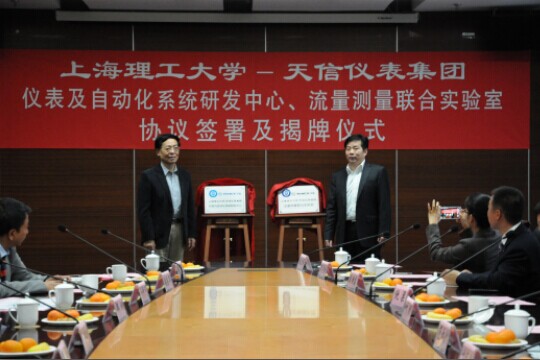 2014年11月25日下午,由上海理工大學(xué)與天信儀表集團(tuán)有限公司合作建立的“上海理工大學(xué)—天信儀表集團(tuán)儀表自動(dòng)化系統(tǒng)研發(fā)中心、流量測(cè)量聯(lián)合實(shí)驗(yàn)室”正式掛牌使用。上海市教委科技發(fā)展中心主任許開宇等教委領(lǐng)導(dǎo)、上海理工大學(xué)副校長(zhǎng)鄭剛等校方領(lǐng)導(dǎo)、蒼南縣副縣長(zhǎng)林朝朝等政府領(lǐng)導(dǎo)、天信儀表集團(tuán)總裁范叔沙等企業(yè)代表出席揭牌儀式,并由上理工光電學(xué)院院長(zhǎng)莊松林院士和天信儀表集團(tuán)常務(wù)副總裁兼總工葉朋揭牌。